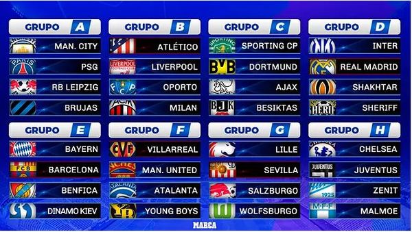 A partir de las 1800 horas los aficionados de. Atlético Real Madrid Barcelona Sevilla y Villarreal. La Champions League 202122 alza el telón y ya se conocen los grupos de la primera fase de la competición.
